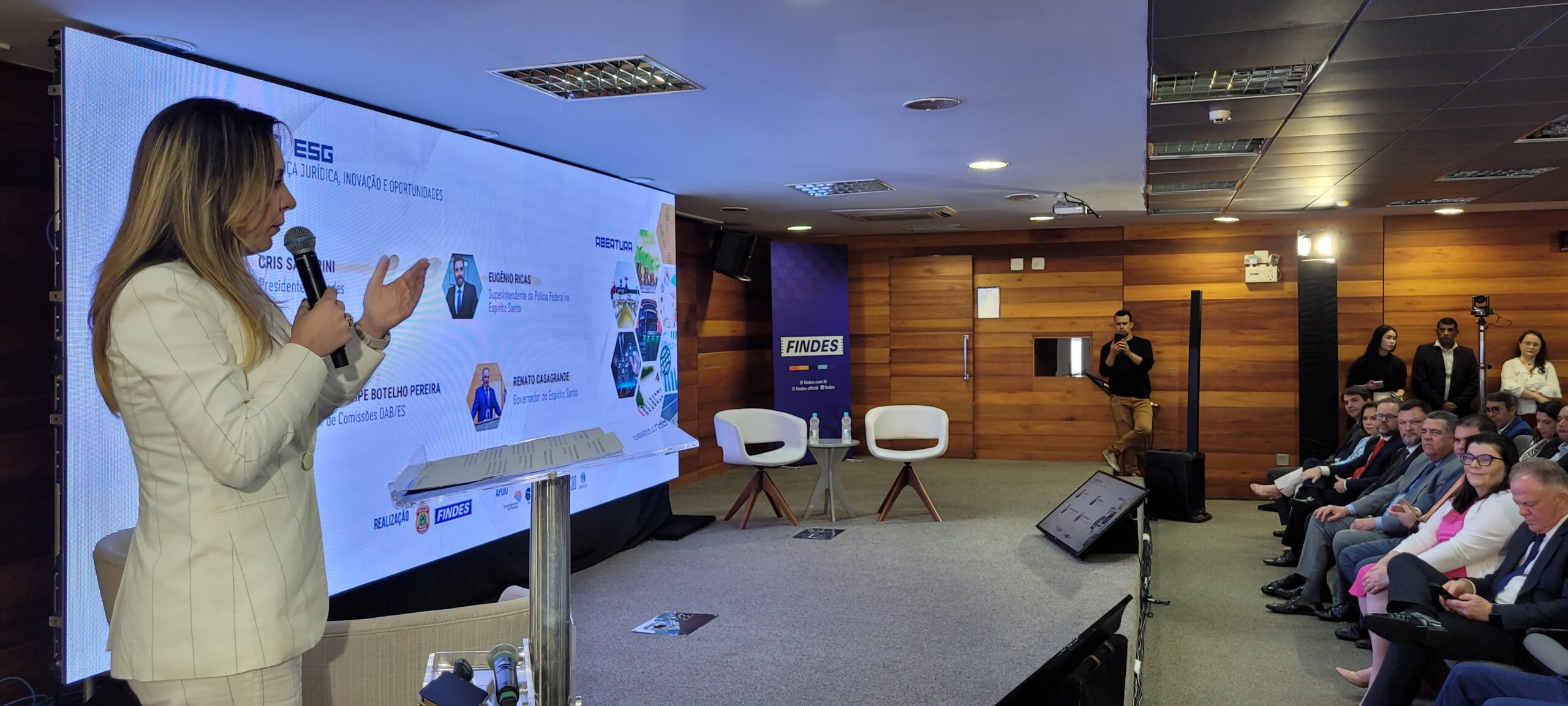 De acordo com a presidente da Findes, Cris Samorini, a sigla ESG se integra cada vez mais ao dia a dia das empresas. Seja nas pautas ambientais, sociais ou de governança, ela é fundamental para garantir a sustentabilidade dos negócios e das organizações a longo prazo.