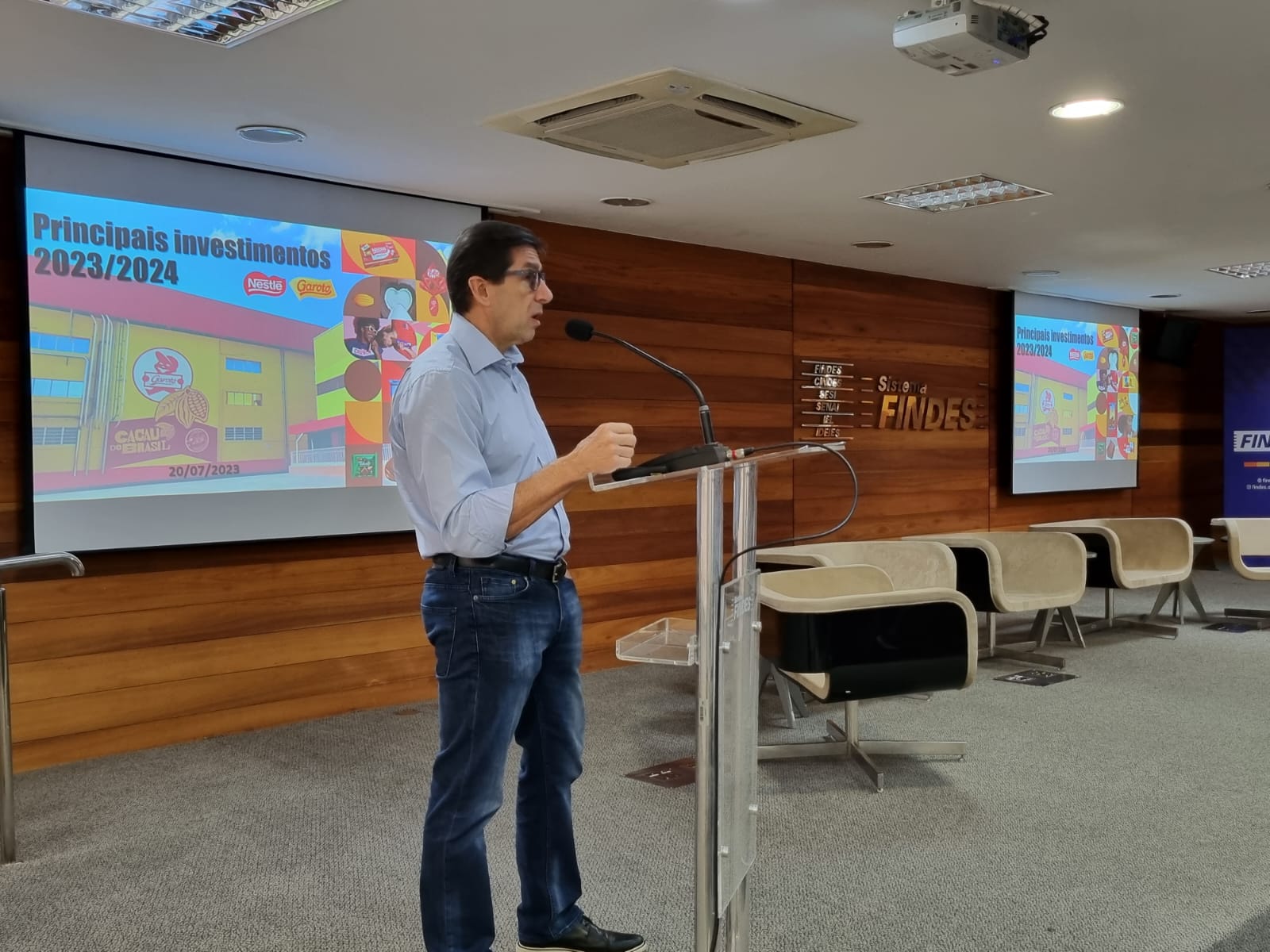 O gerente de Engenharia da Garoto/Nestlé, Mauricio Consoni, apresentou os investimentos que serão feitos pela Nestlé na planta do Espírito Santo e destacou a intenção da empresa em contratar mão de obra capixaba.