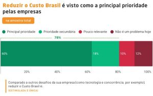 O estudo da CNI também revela a preocupação dos empresários com o Custo Brasil, conjunto de fatores que limitam a competitividade da economia frente a outros países. A taxa básica de juros é um dos principais componentes desse custo. Para 60% dos executivos industriais, reduzir o Custo Brasil deveria ser a principal prioridade do país — outros 18% colocam como segunda prioridade.